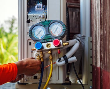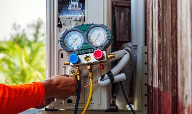 Checking refrigerant levels to maintain efficiency.
